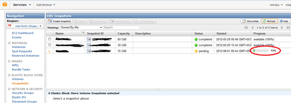 Spotted this scrollbar while creating a Snapshot from a EBS (Elastic Block Storage) Volume. Is this progress bar something new or I haven’t just didn’t noticed it before?