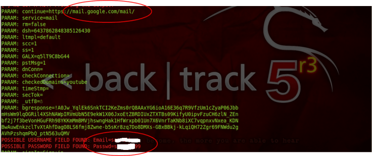 Figure 1: That’s how a Hacked Gmail looks like. after a successful DNS Poisoning and phishing attack in a corporate network. notice the email id and password below ?
